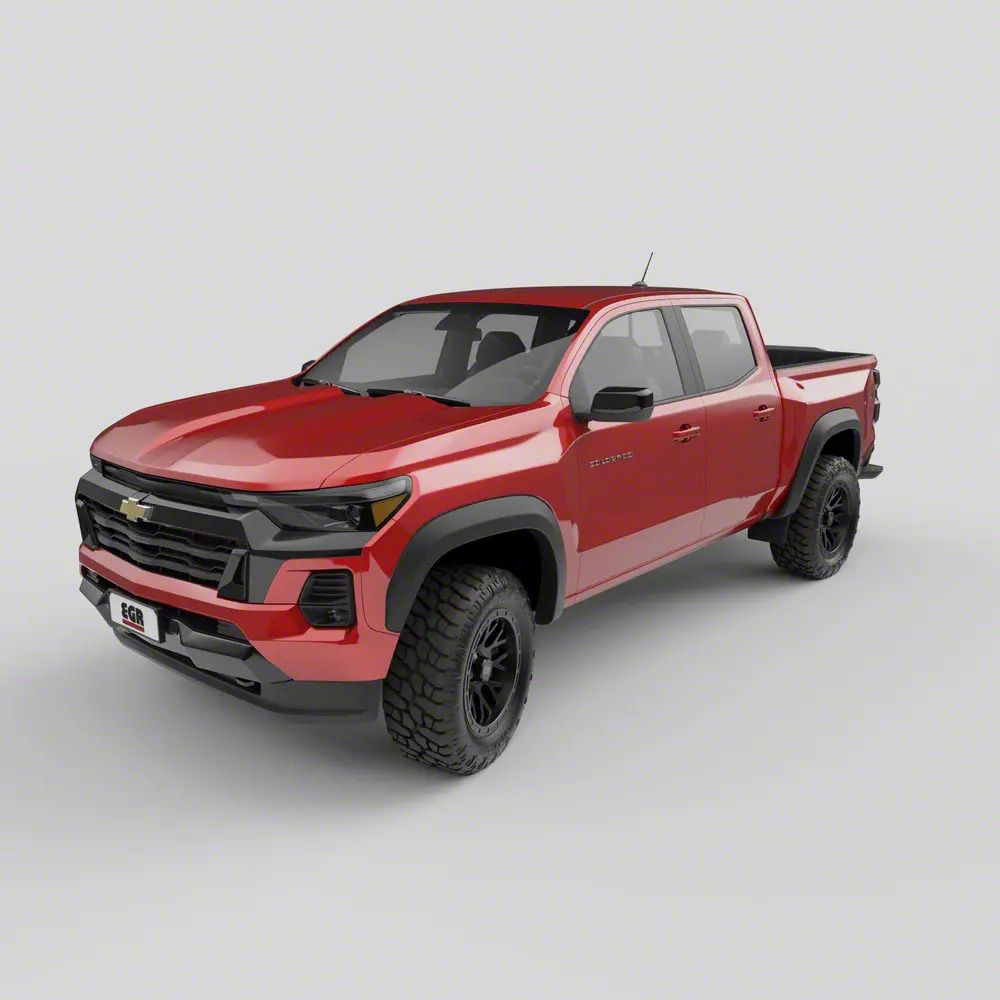 Enhance Your Vehicle's Appearance and Protection. These EGR Rugged Look Fender Flares are designed for 2023-2026 Chevrolet Colorado models (excluding ZR2 models). With a rugged design and matte black finish, these fender flares offer both an aggressive look and durable protection for your vehicle's wheel wells. Crafted from ABS plastic and UV protected, these fender flares are built to last, offering a sleek, tough exterior that withstands the elements.