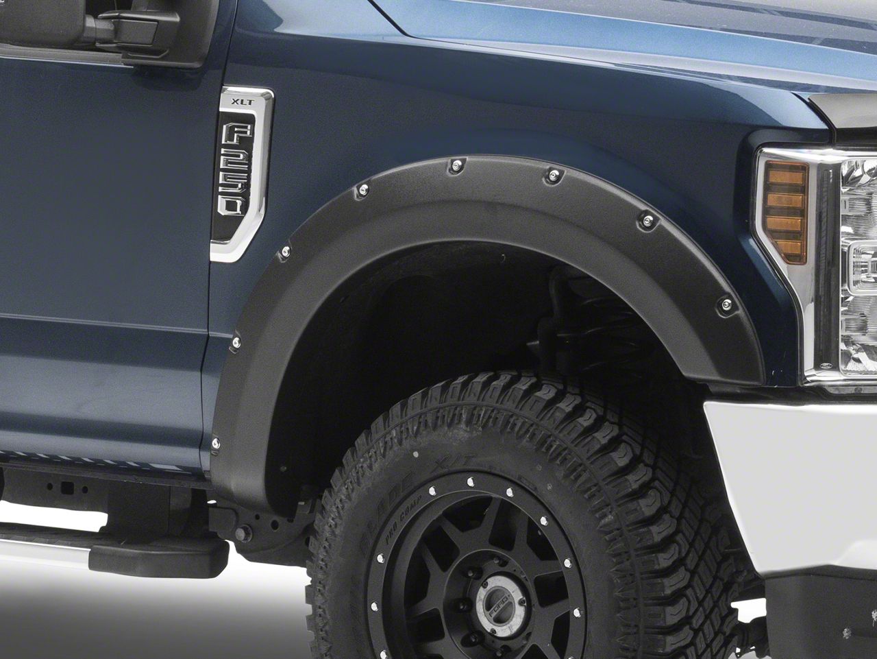 Aggressive Design. Upgrade your F-250 with the EGR Baseline Bolt Style Fender Flares; Textured Black. These fender flares not only provide a rugged and aggressive look to your truck but also offer added protection against rocks, mud, and other road debris. The bolt style design enhances the overall aesthetic, giving your truck a customized and off-road-ready appearance.