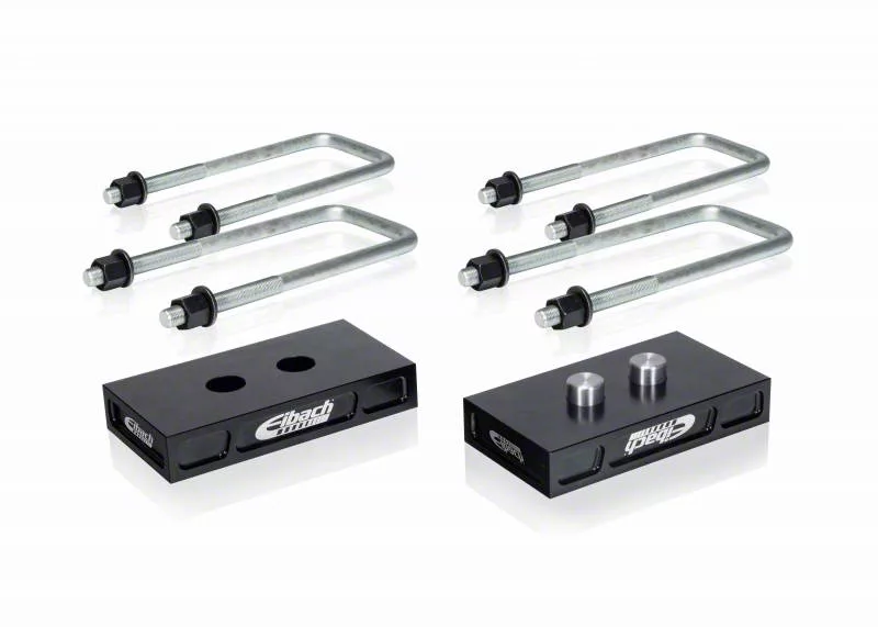 Prevents Rear from Sagging. To enhance your truck’s hauling and towing performance, gear it up with these Eibach 1-Inch Pro-Truck Rear Lift Blocks. These rear lift blocks allow you to load heavy cargos in your truck bed without making its rear sag. These lift blocks essentially give your rear a 1-inch lift for higher ground clearance. With these rear lift blocks, you may haul and tow while maintaining your truck’s rake.
