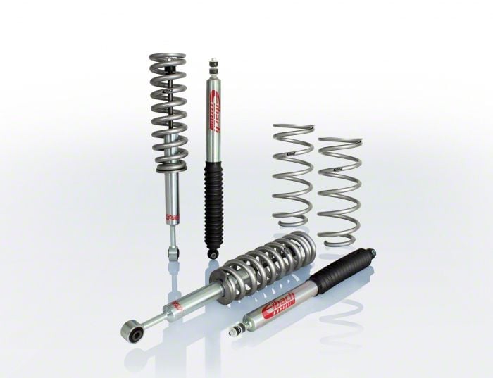 Comprehensive Suspension Upgrade. Bulwark your suspension assembly with the help of the Eibach Pro-Truck Lift System. This meticulously engineered upgrade provides an impressive boost in ground clearance, allowing you to conquer rugged terrains with ease.
