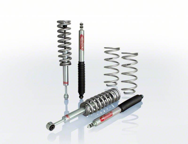 Front Pro-Truck Sport Coilover Shocks. Your RAM’s 2.20 to 2.75 inches of front lift is provided by a pair of Pro-Truck Sport-series coilover shocks. These front coilovers utilize a monotube design for superior stability and improved handling off-road and a firm but comfortable ride on the highway. The coilovers’ included springs for their part are made from Eibach’s exceptionally strong spring steel and are powder coated in silver for superior corrosion protection.