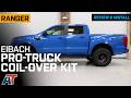 Pro-Truck Suspension Upgrade. The Eibach Pro-Truck Coil-Over Kit; Stage 2R delivers enhanced suspension performance with front coilovers and rear reservoir shocks designed to improve off-road capability and ride quality. It offers flexible height adjustment to optimize vehicle stance and clearance according to terrain and driving conditions, making it ideal for enthusiasts seeking superior control.