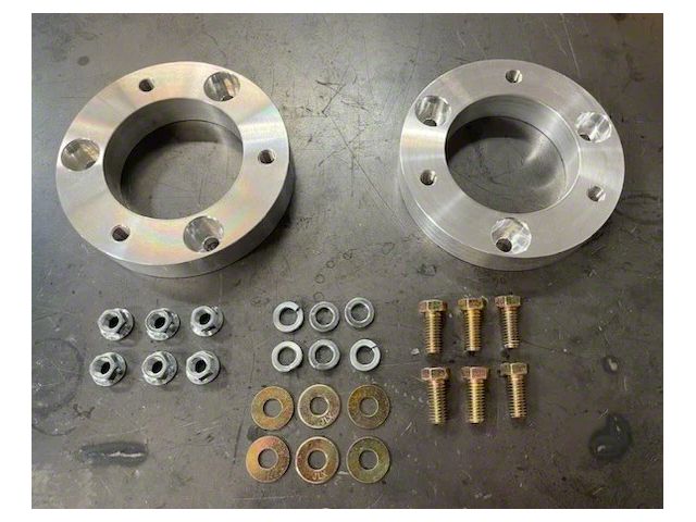 Description. Elevate Suspension offers a simple and cost-effective way to level your 2019-2023 GM1500 with our 2" leveling Kit. Our 2" leveling kit will lift the front of your vehicle for a level stance providing plenty of room to fit up to 33x12.50 tall tires, all while maintaining the factory ride quality and drivability. Elevates leveling kit consist of (2) CNC machined billet aluminum bolt on front upper strut spacers that provides a 2” lift without disassembly of your factory strut.