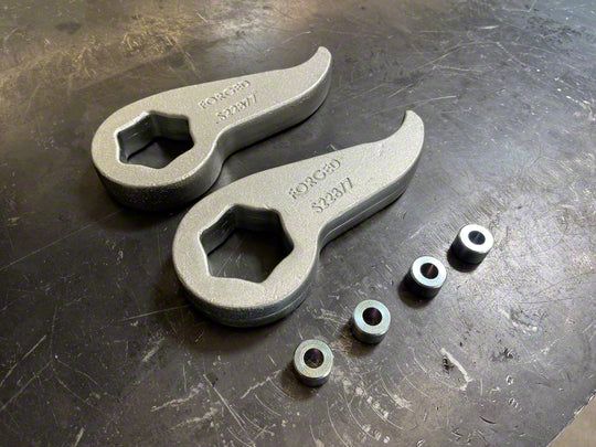 Description. Elevate Suspension offers a simple and cost-effective way to level your 2020-2023 GM2500HD/3500HD. Our 2" leveling key will lift the front of your vehicle for a level stance providing plenty of room to fit up to 35x12.50, all while maintaining the factory ride quality and drivability. Elevates 2” leveling kit consist of (2) Forged Torsion Keys and shock spacers for use of the factory shocks.