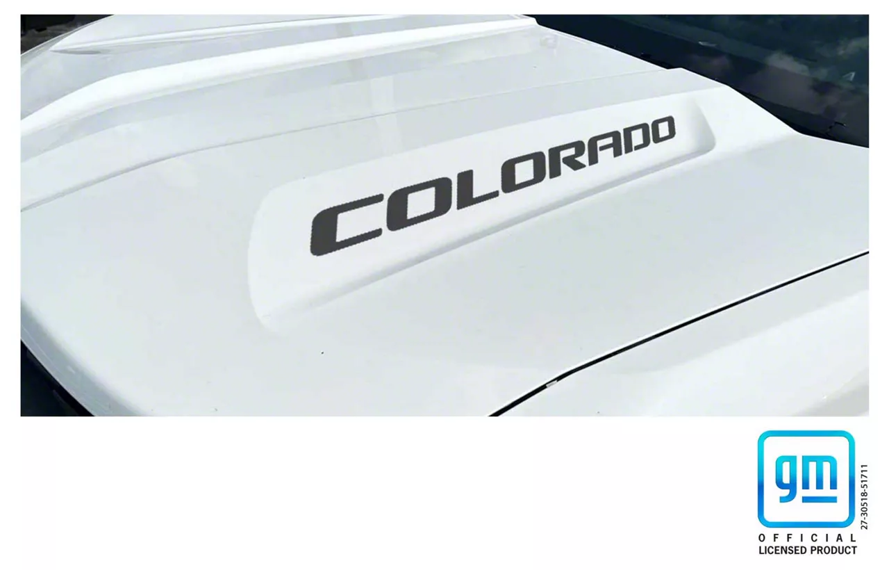 Pre-Cut with Precision to Match Styling. The Emblems Plus Hood Lettering Decals offer a sleek way to enhance your truck's appearance with an aggressive, factory-inspired look. These decals are pre-cut with precision to match the contours of your hood and provide a vibrant, long-lasting Matte Black accent to set your Chevrolet Colorado apart.