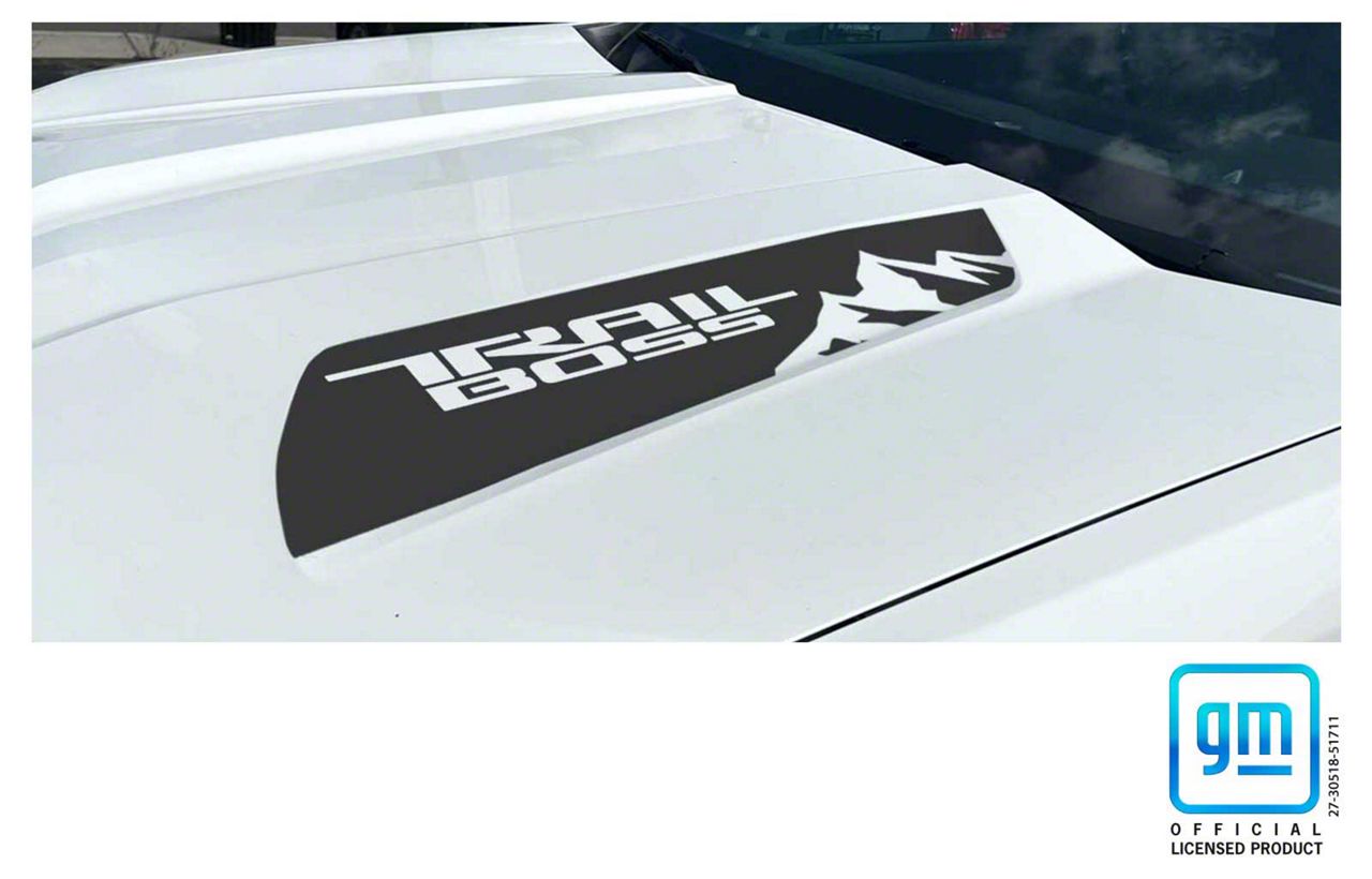 Application. The Emblems Plus TRAIL BOSS Mountains Hood Decals fit 2023-2026 Colorado Trail Boss models.