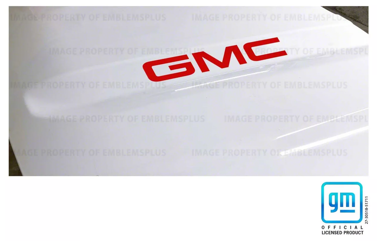 Bold Hood Accent. The Emblems Plus GMC Hood Lettering Decals deliver a stylish and bold accent to the front end of your vehicle. These decals enhance your truck’s appearance by adding refined branding to the hood contours. Their stylish Red design adds a modern aesthetic that blends seamlessly with factory styling while offering a customized edge.
