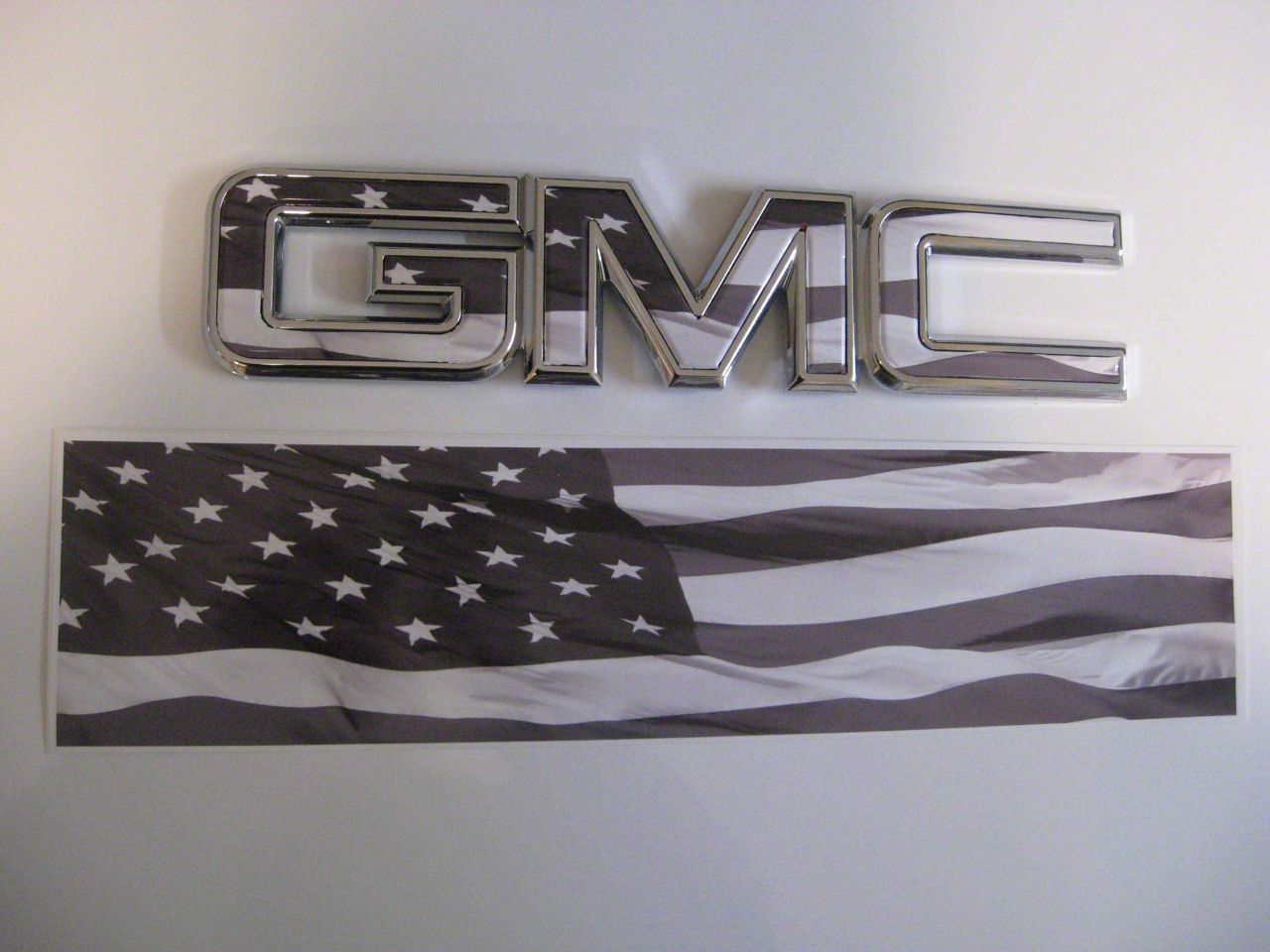 Custom Tailgate Styling. The Emblems Plus GMC Tailgate Overlay Decal is designed to instantly elevate the appearance of your truck’s rear end. With its American flag-inspired design, this decal adds a patriotic flair while offering unique customization. It enhances both the aesthetic and personal touch of your vehicle.