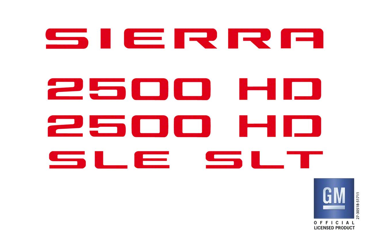 Application. The Emblems Plus Emblem Overlay Decal Lettering Set fits 2007-2019 Sierra 2500 HD models.