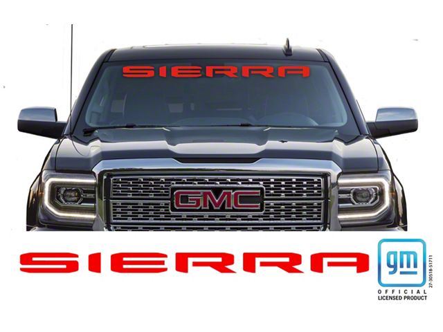 Enduring Beauty. Engineered with exceptional weather resistance, this gloss red Emblems Plus SIERRA Windshield Banner is built to bravely face the elements. Whether under the relentless glare of the sun, the persistent drizzle of rain, or other environmental factors, the banner maintains its strong adhesive properties and brilliant color integrity.