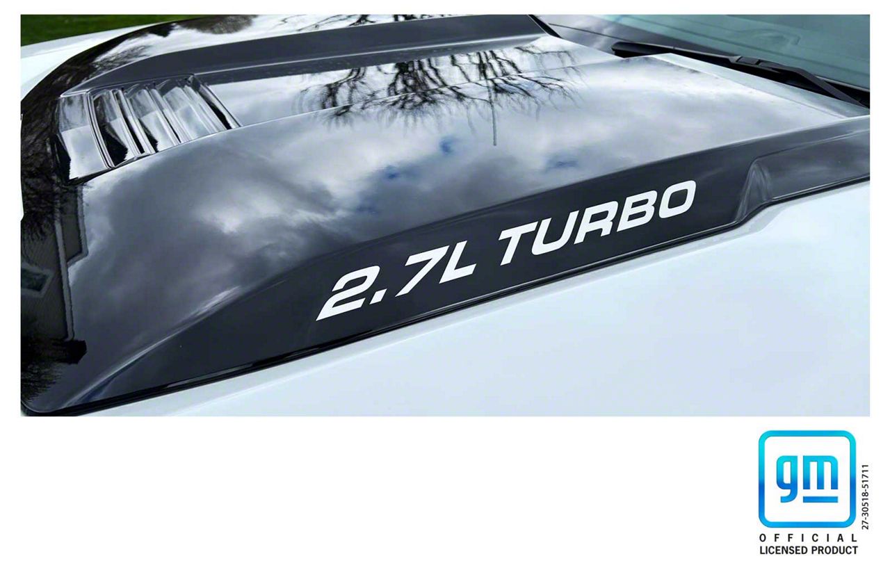 Application. These Emblems Plus 2.7L TURBO Hood Scoop Lettering Decals fit 2022 to 2026 2.7L Silverado 1500 models.
