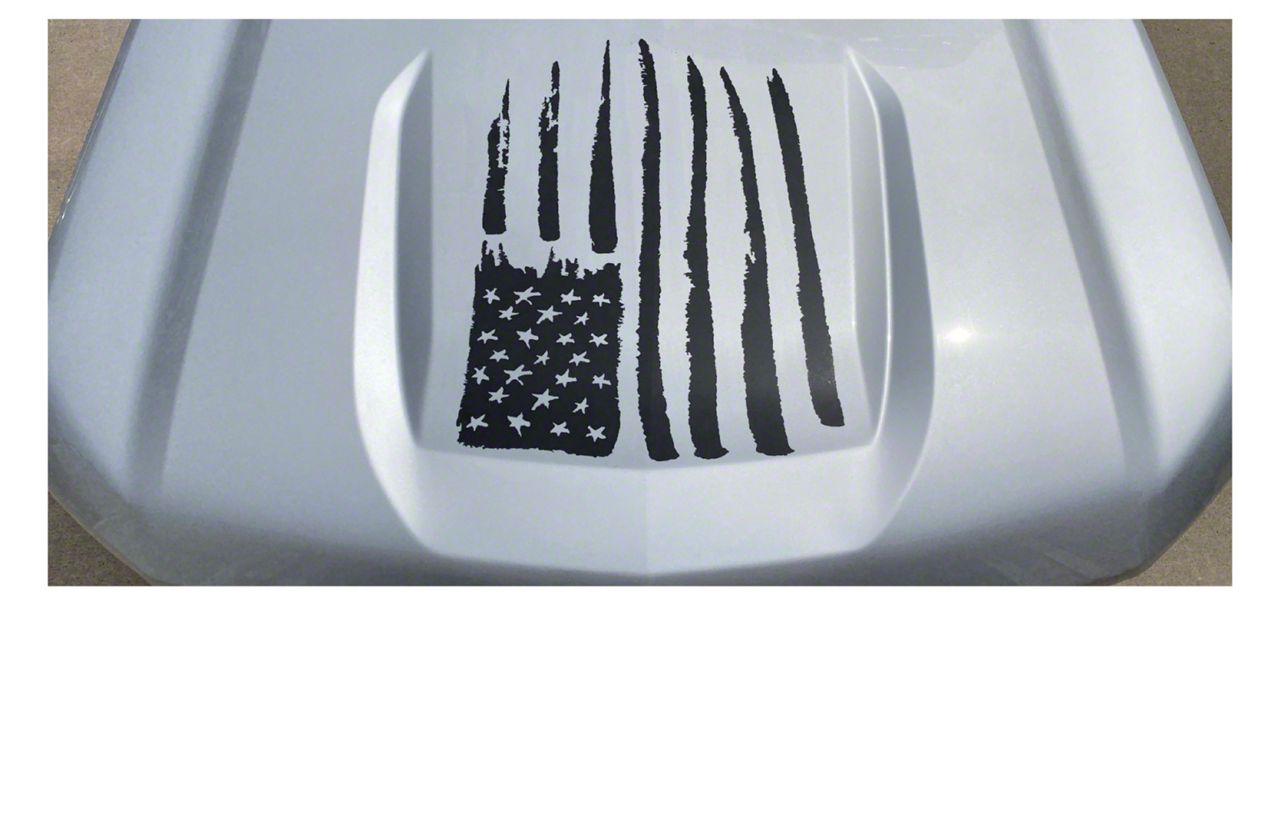 Construction and Appearance. Designed for durability and easy application, this hood decal uses a high-quality, glossy black vinyl material that resists fading, cracking, and peeling. The distressed flag design is printed with sharp, stylish detail, while the included pre-applied application film ensures a smooth, bubble-free installation. The generous sizing covers a significant portion of the hood, making it an eye-catching accent for any compatible Silverado model.