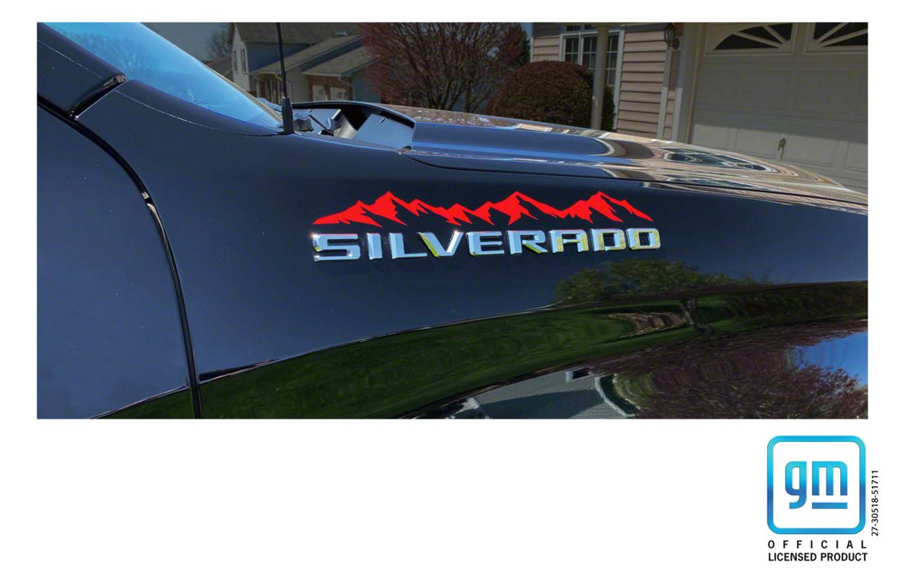 Application. This Emblems Plus Mountain Range Emblem Enhancement Decals (Red) fits 2019–2026 Chevrolet Silverado 1500 models, excluding High Country, Trail Boss, and ZR2 models.