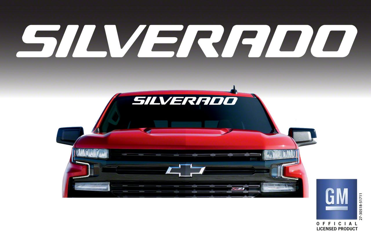 Application. This Emblems Plus SILVERADO Windshield Banner; Gloss White fits 2014–2026 Silverado 1500 models.