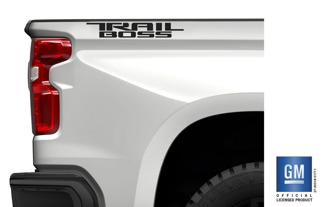Application. This Emblems Plus Bedside Decals set fits 2019-2026 Chevrolet Silverado 1500 Trail Boss Models. They’re a great way to highlight your truck’s unique trim level while adding a refined, factory-style finish to your vehicle’s exterior.