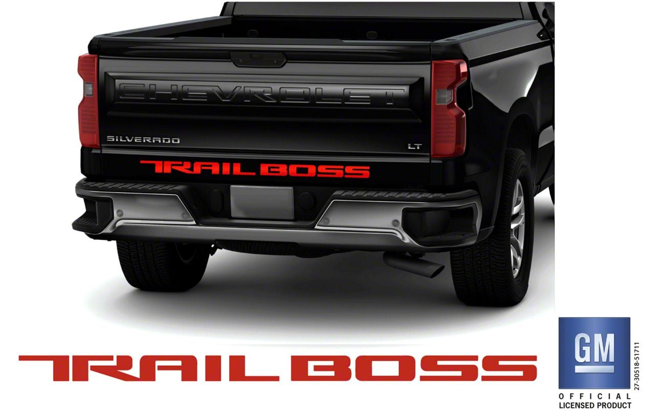 Application. These Emblems Plus TRAIL BOSS Tailgate Lettering Decals in Gloss Red are designed to fit 2019-2026 Silverado 1500 Trail Boss models.