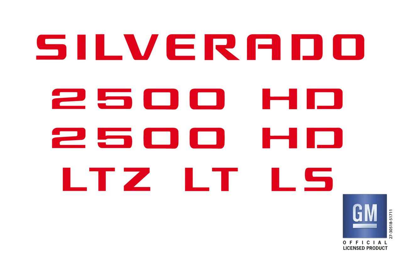 Sleek and Custom Appearance. These Emblems Plus Emblem Overlay Decals are the perfect upgrade to enhance the aesthetic appeal of your vehicle. Designed specifically for your Chevrolet Silverado 2500 HD model, they provide a sleek, custom look with their Red finish. Furthermore, the stripes are pre-cut to precise measurements, ensuring a flawless fit and easy installation.