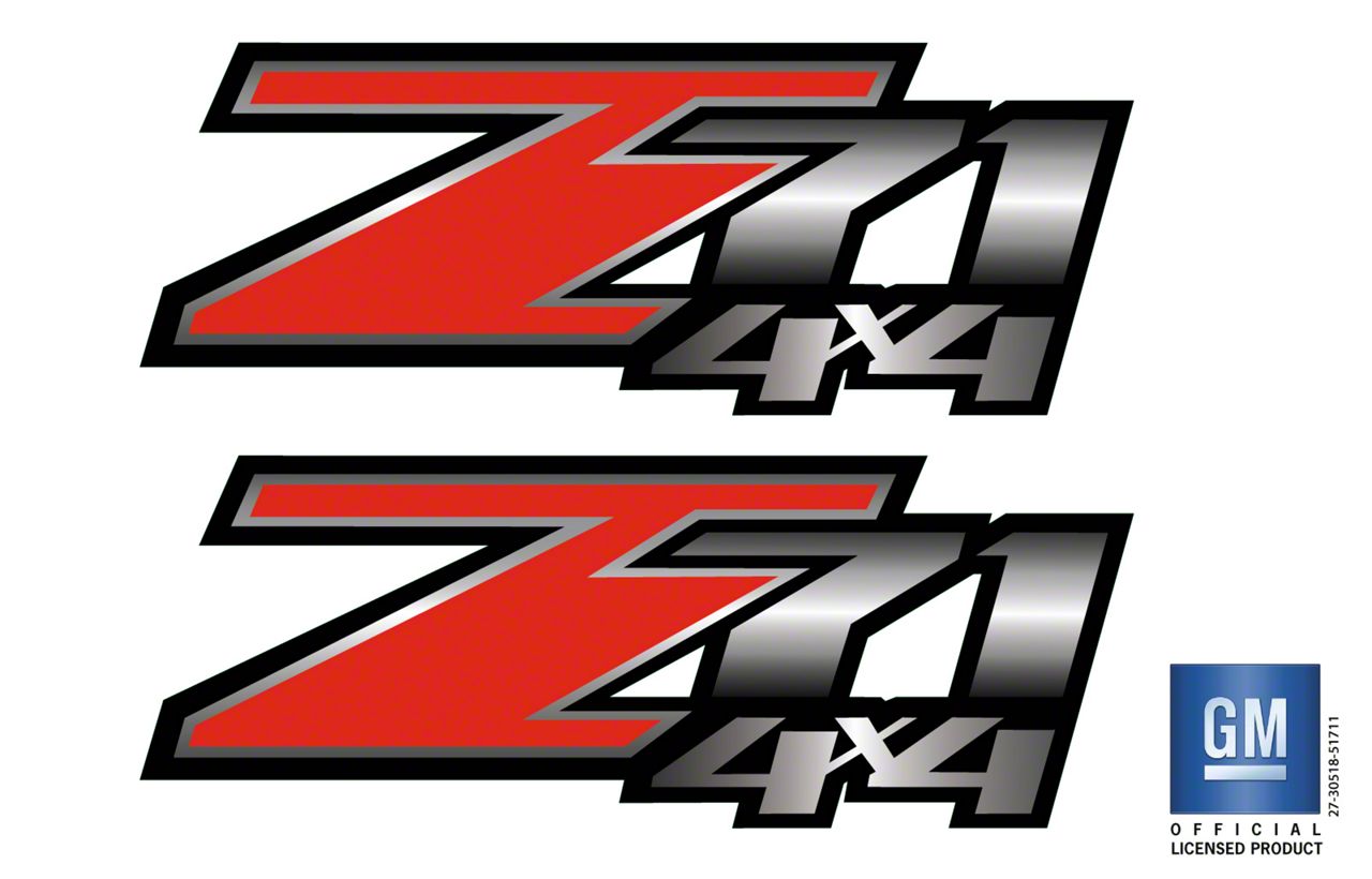 Construction and Appearance. Crafted in a state-of-the-art facility, these Emblems Plus Z71 4x4 Bedside Decals boast a weather-tight structure and a corrosion-resistant composition. What's more? The Red/Silver/Black overlay adds a vibrant touch, while the high-quality materials ensure durability and resistance to wear and tear.