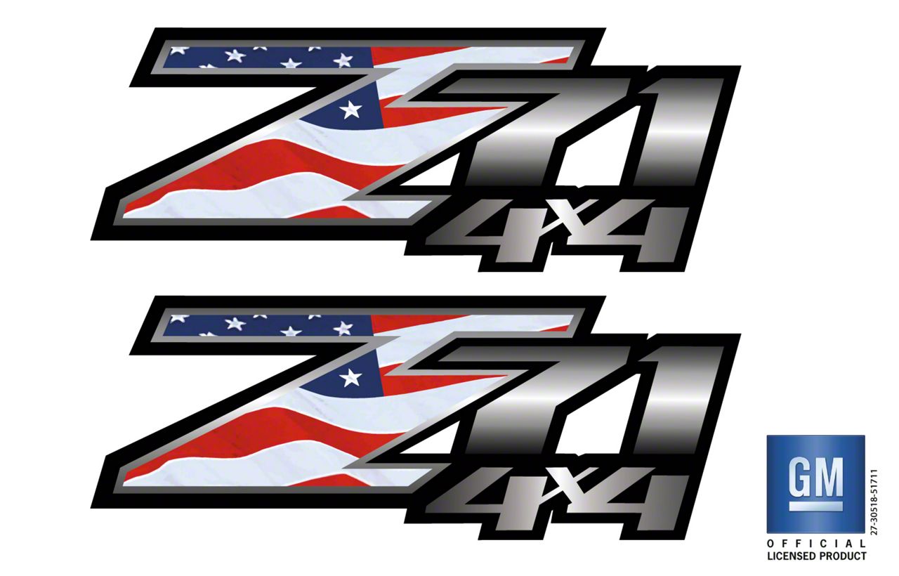 Set of (2) Chevy Silverado GMC Sierra American Flag Z71 4X4 Bedside Decals