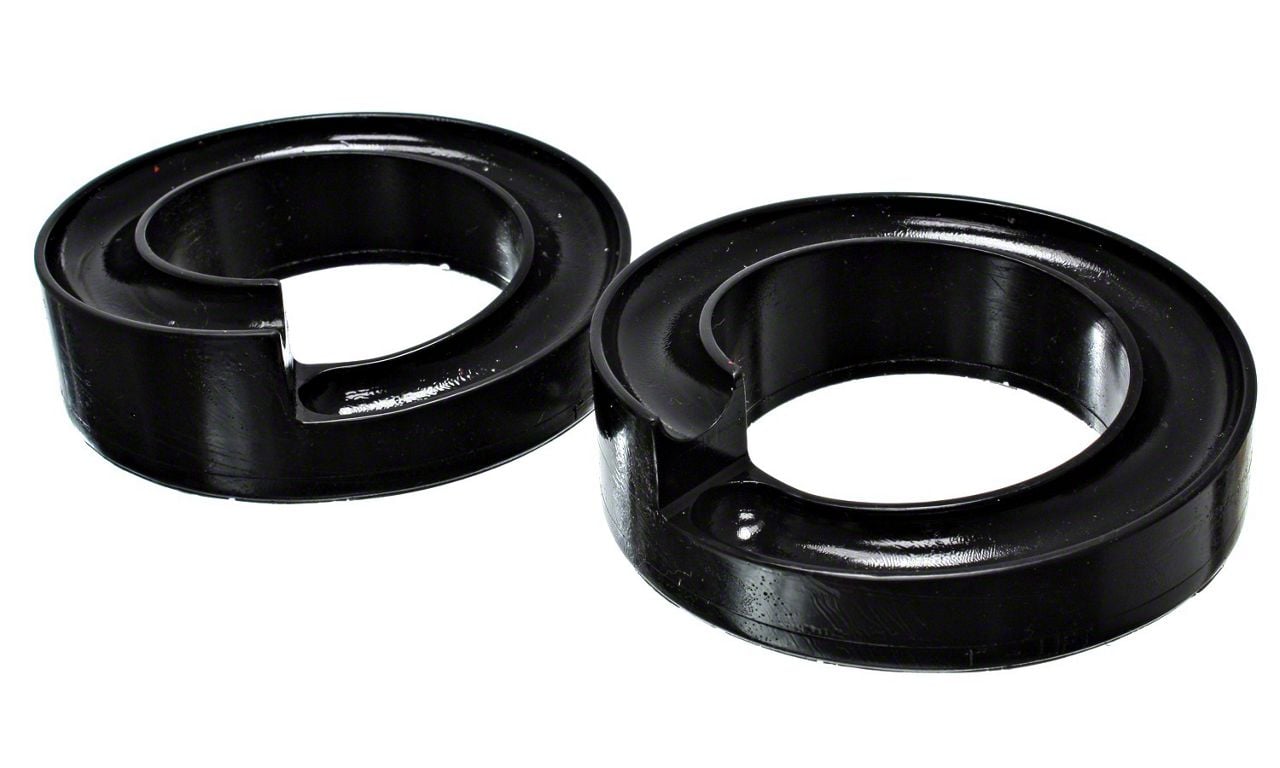 Enhanced Ride Height with Lift Isolators. These Coil Spring Lift Isolators provide an additional 1-inch lift to your Ford F-150, improving both the stance and clearance of your vehicle. Designed with performance polyurethane, these isolators offer increased durability and are perfect for elevating the front end of your truck without sacrificing ride quality.