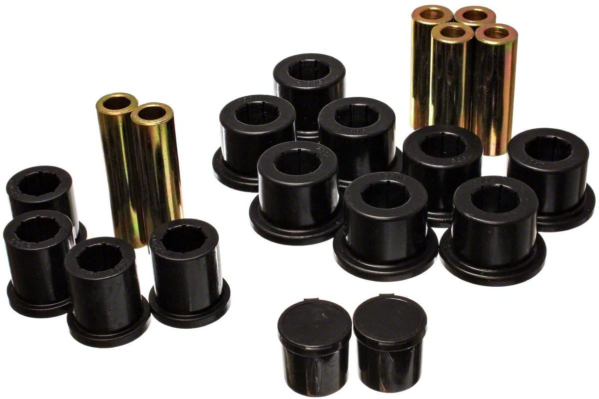 Zinc-Coated Reinforced Steel Sleeves. Crafted from premium quality Hyper-Flex material and featuring zinc-coated reinforced steel sleeves, these Rear Leaf Spring Bushings deliver significant performance and durability improvements. To add more, the black color not only adds a touch of flair but also makes them easy to identify during maintenance or repairs.