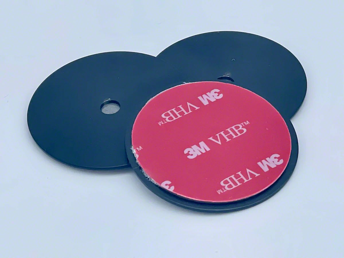 3M VHB Backed adhesive powder coated steel disk for attaching your Quick Paper Towel Holder to non ferrous surface such as fiberglass or aluminum.