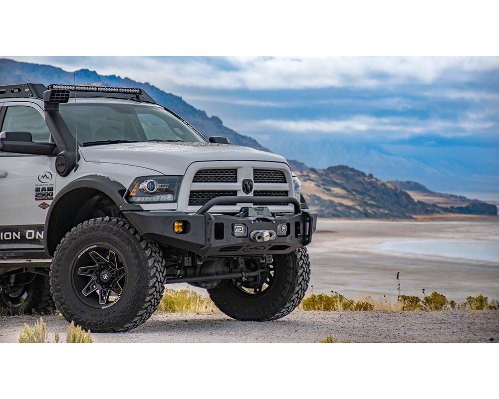 Big-Time Bumper. If you’re looking for a front bumper with the same heavy-weight characteristics as your RAM 2500, look no further than the Expedition One Ultra Front Bumper with Integrated Winch Solenoid Center Section for Extended Flares in Textured Black. This heavy-duty front bumper has been designed to protect your intercooler and is ready to accommodate integrated and non-integrated winches up to 18,000-pound.