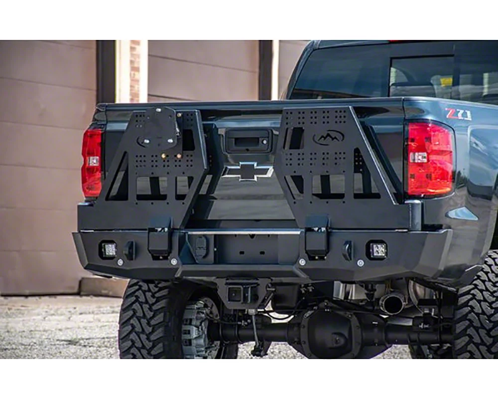 Application. The Expedition One Rear Bumper with Dual Swing Arm Carrier System in Textured Black is designed to fit all 2014-2018 Chevrolet Silverado 1500 models.
