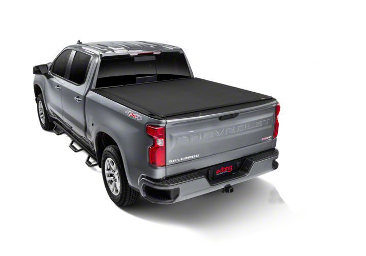 Description. Introducing Extang's Xceed -- a seamless and secure hard folding truck bed cover designed and engineered to greater expectations. This flush mounted, hard-folding cover offers full bed access when open, and adds a seamless and polished look to your truck when closed. Xceed was precisely Extang Engineered to provide excellent coverage while ensuring maximum security and ultimate style. Go completely sleek without minimizing the durability of your truck bed cover. Flush mounted to provide an extreme low profile appearance and engineered to complement your truck's functionality and looks. Xceed's matte black finishes are the final touches to enhance the overall appearance of your truck. Xceed also goes double duty on superior security. The EnduraCoat moisture-proof vinyl covering is dedicated to protecting your cargo from earth's elements and the Secure Rotary Release knob hides the operation cable to add an extra step of protection. Together, you can rest assured that your cargo is entirely secured. Stowing large cargo just got easier. Xceed folds all the way up to the back window, allowing complete, full bed access with a unique four-panel construction to reduce the overall height when open.