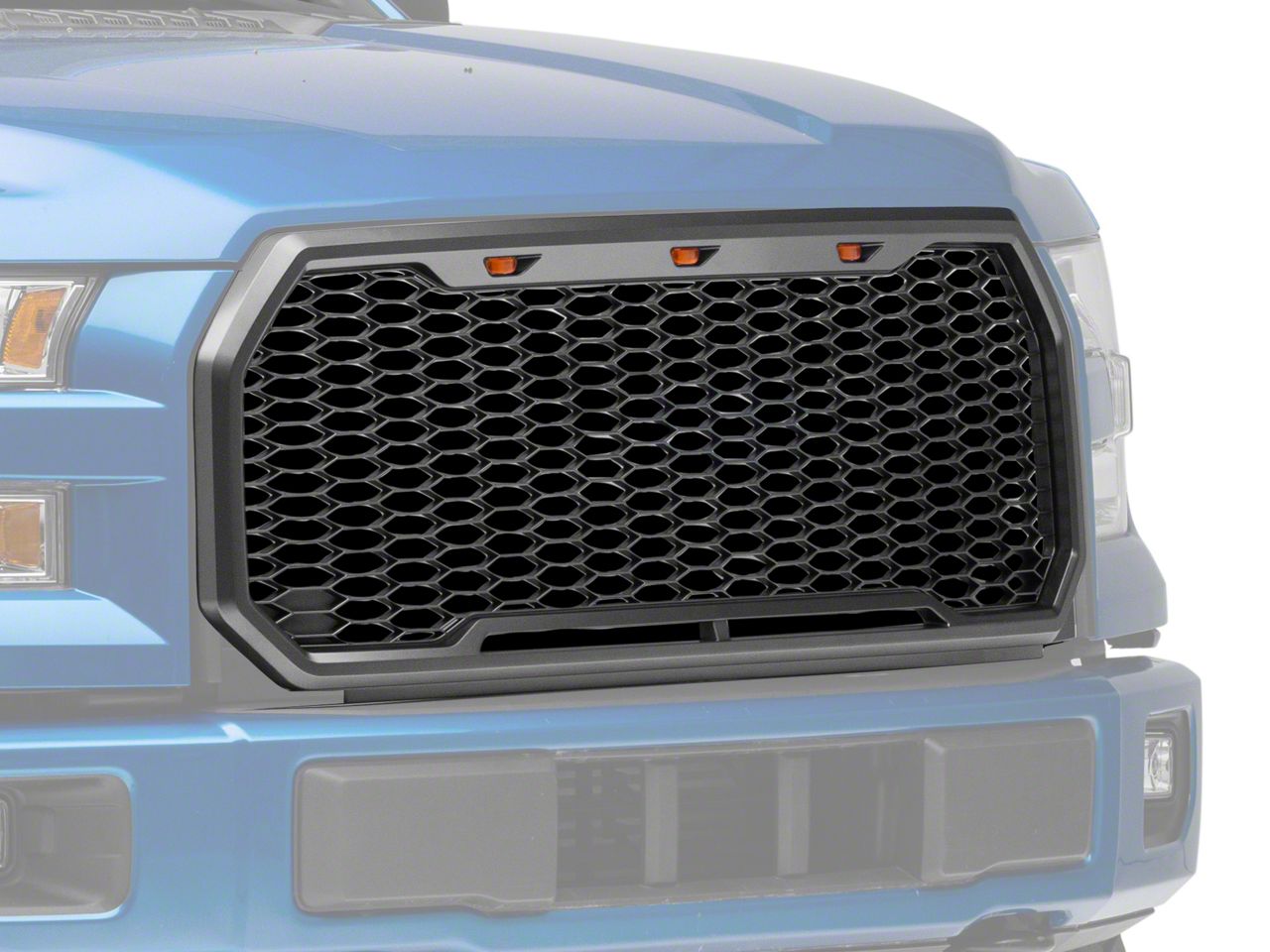 LED Accent Lighting. This Baja Style Grille also includes three high mount amber LED accent lights. These LED accent lights come with a wiring harness that simply splices into your F-150's existing factory headlight harness. The LEDs will then automatically activate in conjunction with your running lights. The eye-catching LEDs not only look great, but will also make your F-150 more visible to other drivers at night and in poor weather conditions.