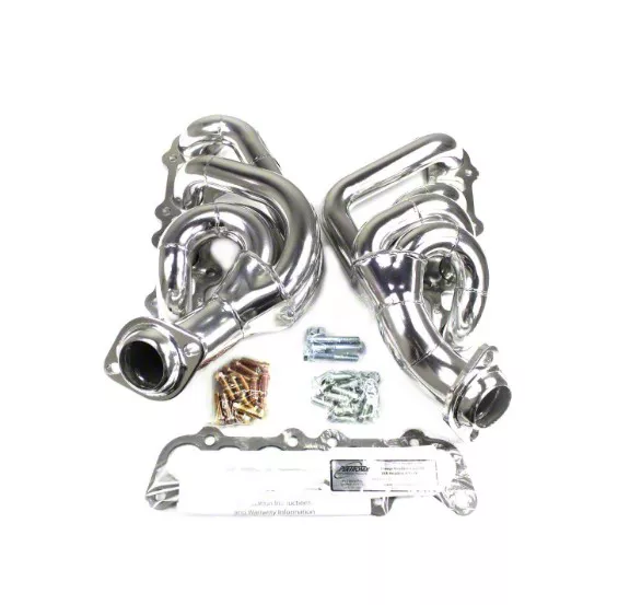 Boasts an Impressive Exhaust Note. Thanks to their shorty styling, these headers are capable of generating a robust growl and rumble on idle that’s more powerful than what your vehicle’s factory units can produce. As such, you can hear the hidden power of your vehicle each time you’re hitting mid RPMs.