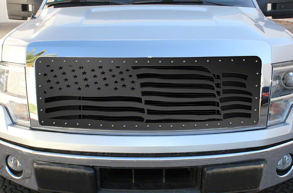 Custom Designed Grille. The one-piece steel upper grille insert with an American flag wave design enhances the front appearance of your vehicle by replacing the factory grille with a distinctive patriotic style. It offers a stylish upgrade that proudly displays patriotic pride while improving the rugged, off-road look of your truck.