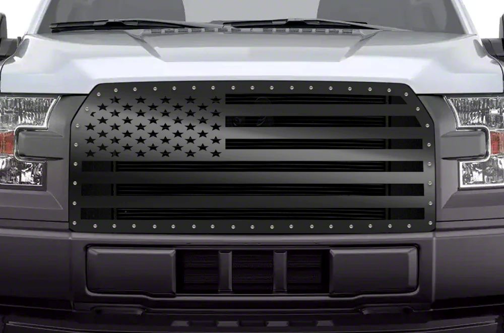 For the Love of the Flag. Display your patriotism with the 1-Piece Steel Upper Replacement Grille (American Flag, Solid). The American flag design of this grille has been precision-cut using modern laser-cut technology for a precise fit and layout. This upper grille replaces your factory part for a more attractive and rugged look for your F-150, all the while exhibiting your love for your country.