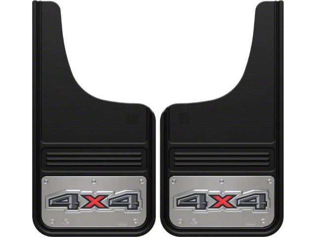 Premium Material Combination. The 12-Inch x 23-Inch Mud Flaps with a 4x4 Logo are a universal product designed to fit any vehicle. Precision-engineered from 304 stainless steel plate and incorporated with premium virgin rubber, these mud flaps are built to last and withstand any harsh weather conditions.