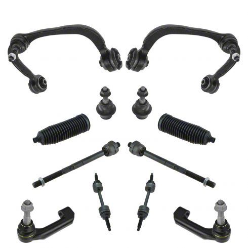 Direct Replacement. Made for the 4WD Ford F-150, this Steering and Suspension Kit is meant to directly replace broken, cracked, warped, or missing steering and suspension parts. Coming as a 12-part kit, this full kit includes sway bar links, lower ball joints, outer tie rods, upper control arms, a steering rack with pinion bellows, and inner tie rods.