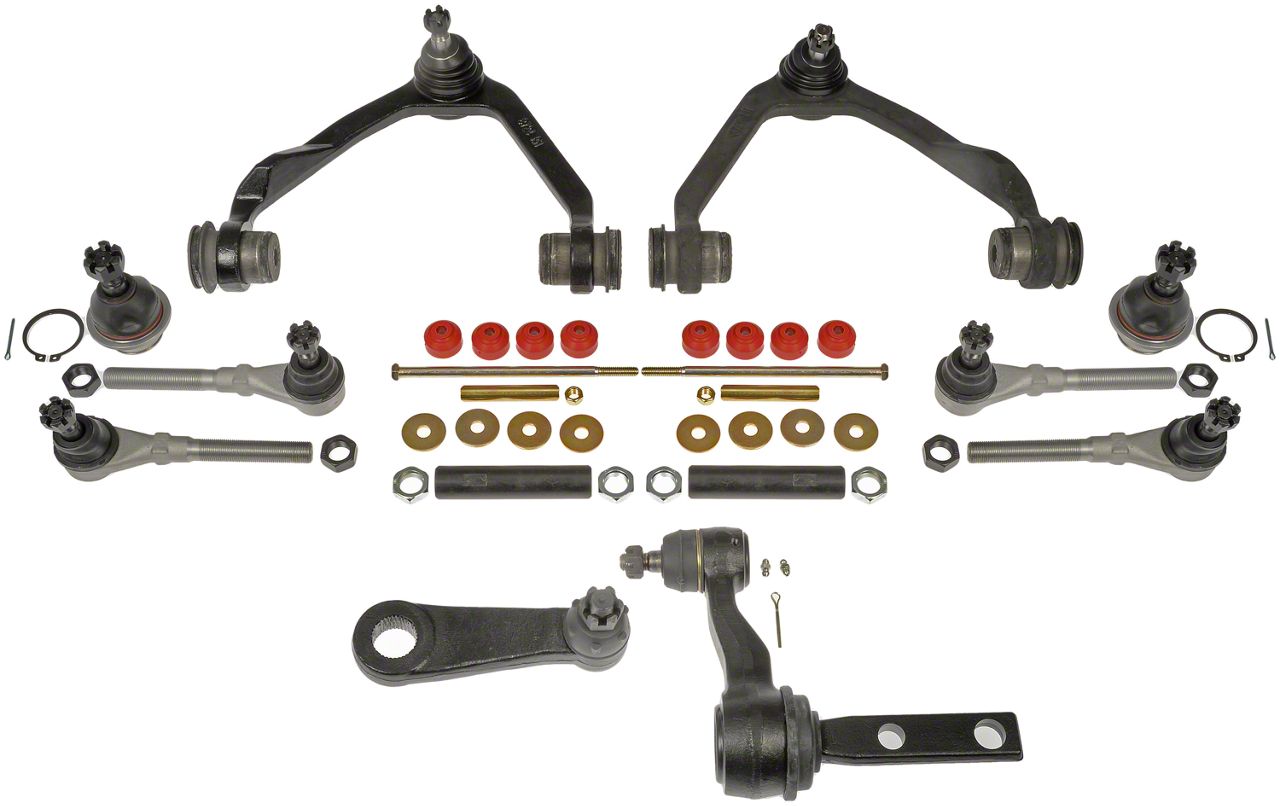 Comprehensive Suspension Solution. The 14-Piece Front Suspension and Steering Kit is designed to restore and maintain your vehicle’s steering and handling performance. This kit includes all essential components for a complete suspension overhaul, ensuring improved ride comfort, stability, and control. Each part is crafted to function like OEM components, providing a seamless fit and reliable operation.