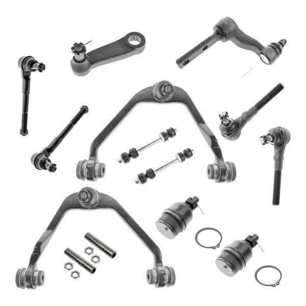 Restored OEM Drive Quality. The 14-Piece Steering and Suspension Kit is designed to be a perfect fit for the F-150. From tie rods and ball joints to control arms and sway bar links, this kit ensures that you have everything necessary to replace worn-out or damaged parts and restore the integrity of your vehicle's steering and suspension system. Constructed from high-quality materials, each component in this kit is built to withstand the rigors of everyday driving and off-road adventures. Engineered to meet or exceed OEM specifications, these parts offer exceptional durability, ensuring long-lasting performance and reliability.