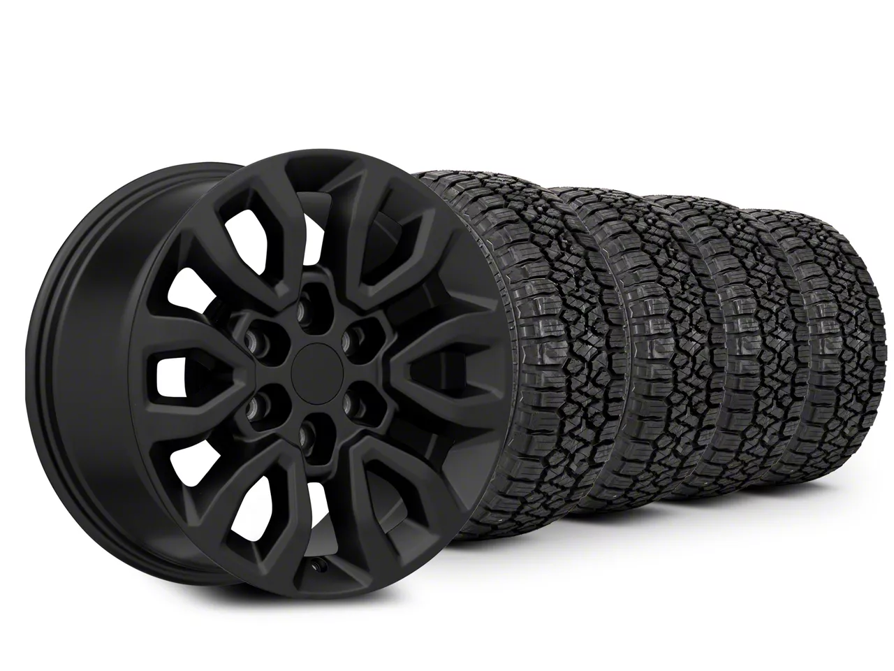 Mounted and Balanced Wheel and Tire Kit. This wheel and tire combo kit features (4) 17x8.5 Gen2 Raptor Style Matte Black 6-Lug Wheels and (4) Kenda All-Terrain KLEVER A/T2 KR628 285/70R17 tires that have been put together into an easy to buy kit that arrives to your door already mounted and balanced ready to be installed on your vehicle.
