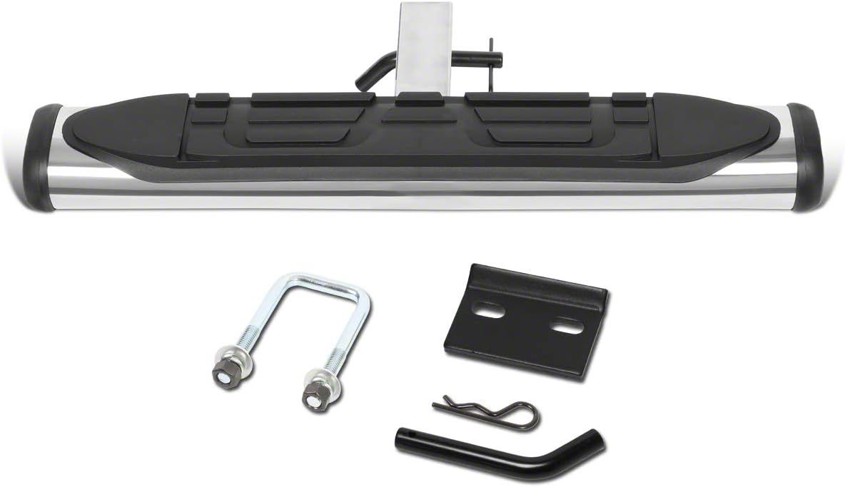 Construction and Appearance. Constructed from top-grade stainless steel and wrapped in a sleek silver finish, this hitch step is built to resist corrosion, rust, and weather exposure. Precision-cut and engineered with thick rubber pads for added grip, it combines rugged performance with polished aesthetics. Built in a state-of-the-art facility, it's designed to perform and look great for years.