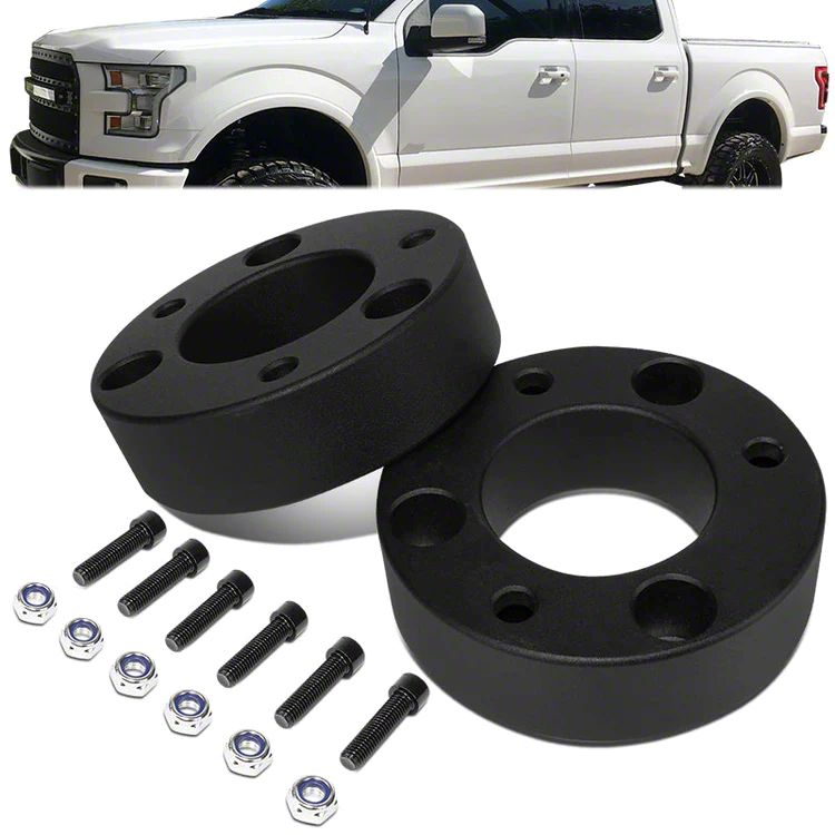 Elevate Performance and Appearance. The 2.50-Inch Front Leveling Kit is designed to raise your Ford F-150 by 2.50 inches, providing a level stance and improved aesthetics. It enhances ground clearance to accommodate larger tires, making it an economical and safe upgrade for both daily driving and off-road adventures.