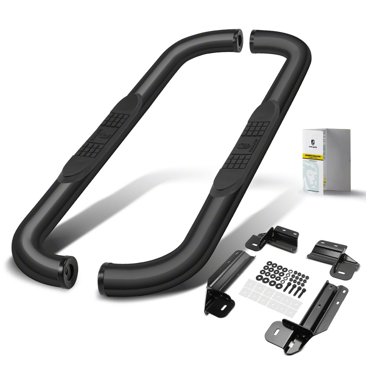 Note. 【Note-1】 3" Black Steel Round, 90-Degree Bent Ends Side Bars.; 【Note-2】 It fits with Standard/Regular Cab (2-Door) only, not fit Extended/Super Cab (2 Full-Size Front Doors & 2 Narrower Rear Doors) or Super Crew/Crew Cab (4 Full-Size Door).