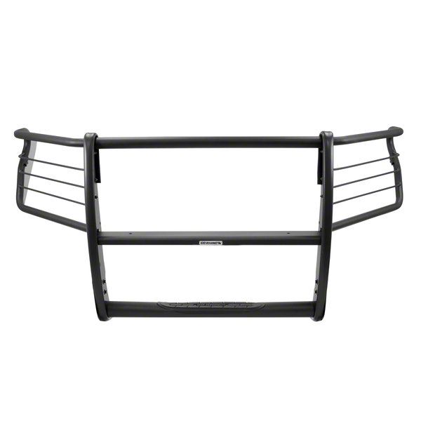 Enhanced Protection. The Go Rhino 3100 Series StepGuard Grille Guard provides additional front-end protection for your vehicle. It includes brush guards to protect the headlights and features a built-in step bar for easy engine access, making it both functional and protective.