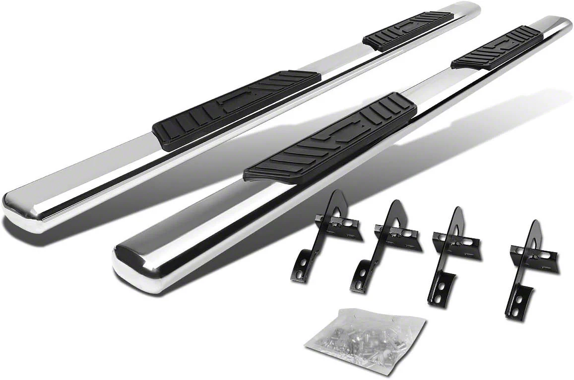 Construction and Appearance. Crafted from durable stainless steel, these step bars feature ABS plastic end caps for added durability and style. The polished chrome finish not only enhances the appearance of your F-150 but also offers excellent resistance to corrosion. The wide 5-inch stepping surface ensures safe footing in all weather conditions, combining practicality with a sleek, modern look.