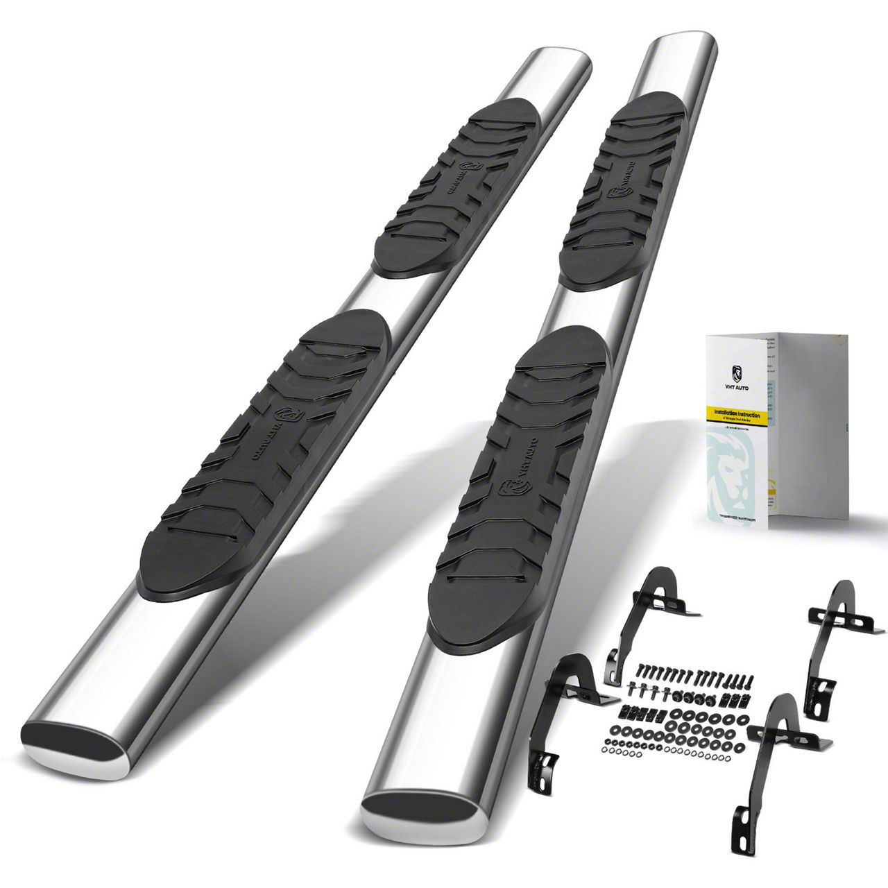 Construction and Appearance. Made from durable stainless steel 304, these side step bars feature a polished chrome finish that offers corrosion resistance and a sleek, glossy appearance for long-lasting style and performance.