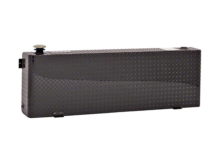 Non-Rusting Aluminum. Equip your vehicle with the 56-Inch Liquid Transfer Tank, a perfect solution for transporting fluids with ease and security. Built from non-rusting 0.125 Brite-Tread aluminum, this tank promises durability and longevity. Its protective black powder coat finish ensures resistance against the elements, keeping it looking new for longer.