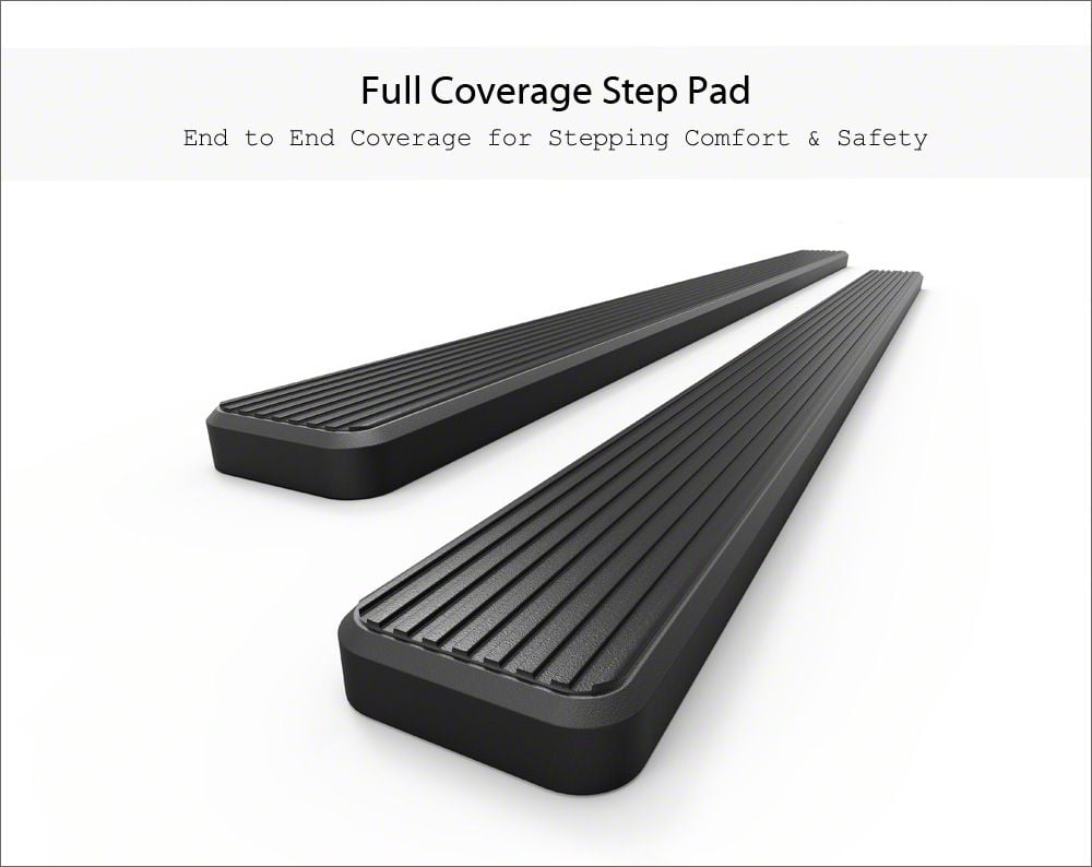 Six-Inch iStep Running Boards. These running boards provide a 6-inch wide step surface, making entry and exit easier while enhancing both appearance and safety. Full-length step pads with high-grip treads and raised ends that function as mud guards ensure a secure footing and clean vehicle.