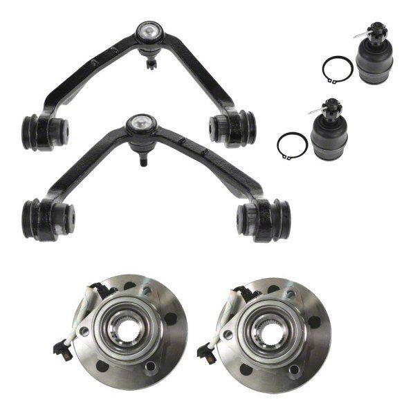 Comprehensive Vehicle Upgrade. Enhance the performance and reliability of your 2000-2003 4WD F-150 equipped with 4-Wheel ABS with this complete Suspension and Drivetrain Kit. Designed as a direct replacement, this kit includes 6 essential components that are OE compatible and comparable, ensuring a perfect fit and function. The matte black finish not only adds a sleek, uniform look to each part but also provides an extra layer of corrosion resistance.