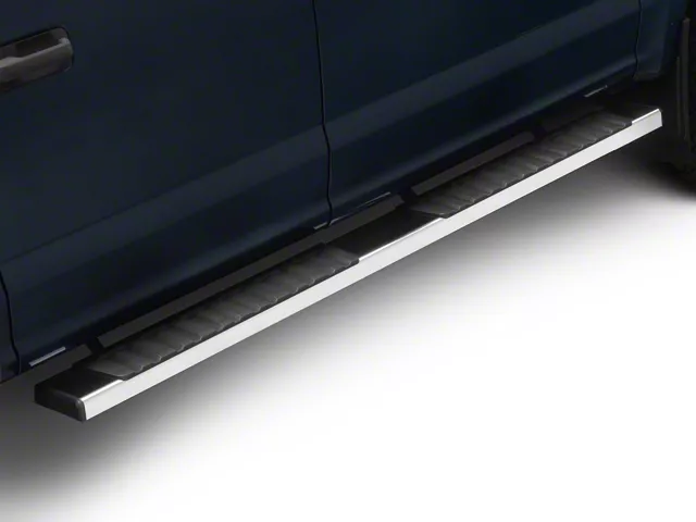 Durable and Stylish Running Boards for Easy Access. These Running Boards offer a polished chrome finish with a wide stepping width of 6.75 inches, providing secure footing for easier entry and exit from your 2015-2025 Ford F-150 SuperCrew. The slip-resistant matte black finish step pads ensure safety, even in wet conditions.