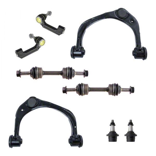 Revitalized Handling. Want better lifting for your rugged Ford? The 8-Piece Steering and Suspension Kit is exactly what you need if you're looking to upgrade the handling and stability of your vehicle. This comprehensive kit includes all the components necessary to revitalize your mean machine's steering and suspension functions to like-new condition, including high-quality tie rod ends, control arms, and ball joints. Each component is engineered to meet or exceed OEM specifications, ensuring reliable performance and durability.
