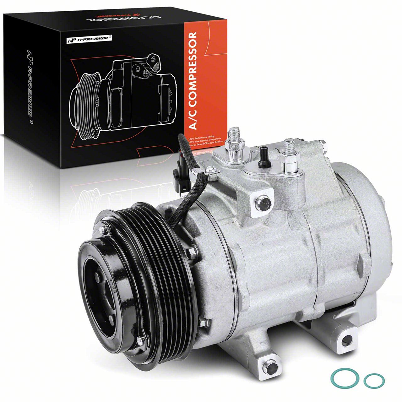 Construction and Appearance. Built from premium-grade materials, the compressor boasts a lightweight yet durable aluminum housing, optimized for strength without adding excessive weight. With a 6-groove serpentine belt pulley, this compressor provides smooth operation, and the sleek aluminum finish adds a modern touch under the hood.